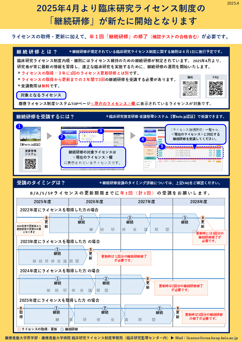 - 臨床研究ライセンス制度 継続研修開始のお知らせ(2025/2/26)