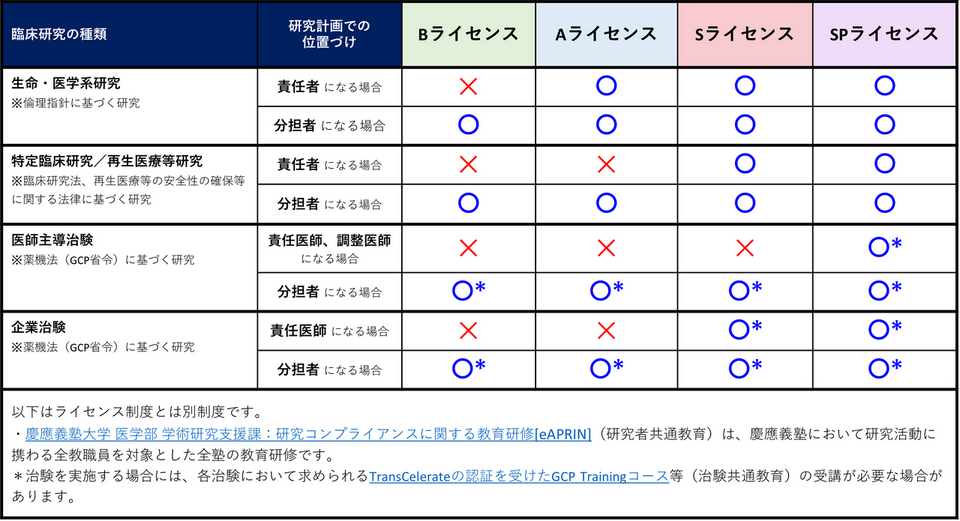 *研究倫理・コンプライアンス教育(eAPRIN)は慶應臨床研究ライセンス制度とは別制度となります(FAQ.7参照)。